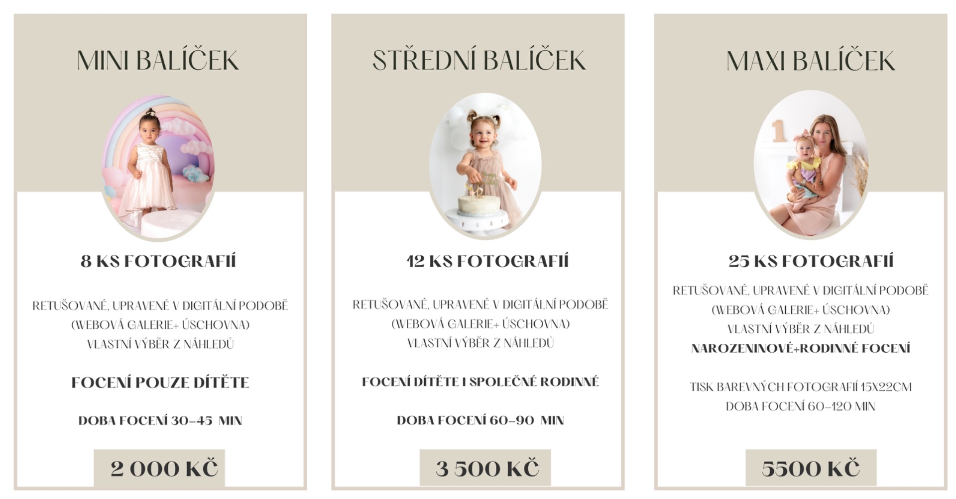 Focení probíhá v ateliéru, kde je prostor pro balonky, jemné dekorace, různá pozadí a přirozenou atmosféru. Vždy se snažím naslouchat vašim přáním a přizpůsobit focení tak, aby bylo co nejvíce "vaše", hravé, elegantní nebo úplně jednoduché.