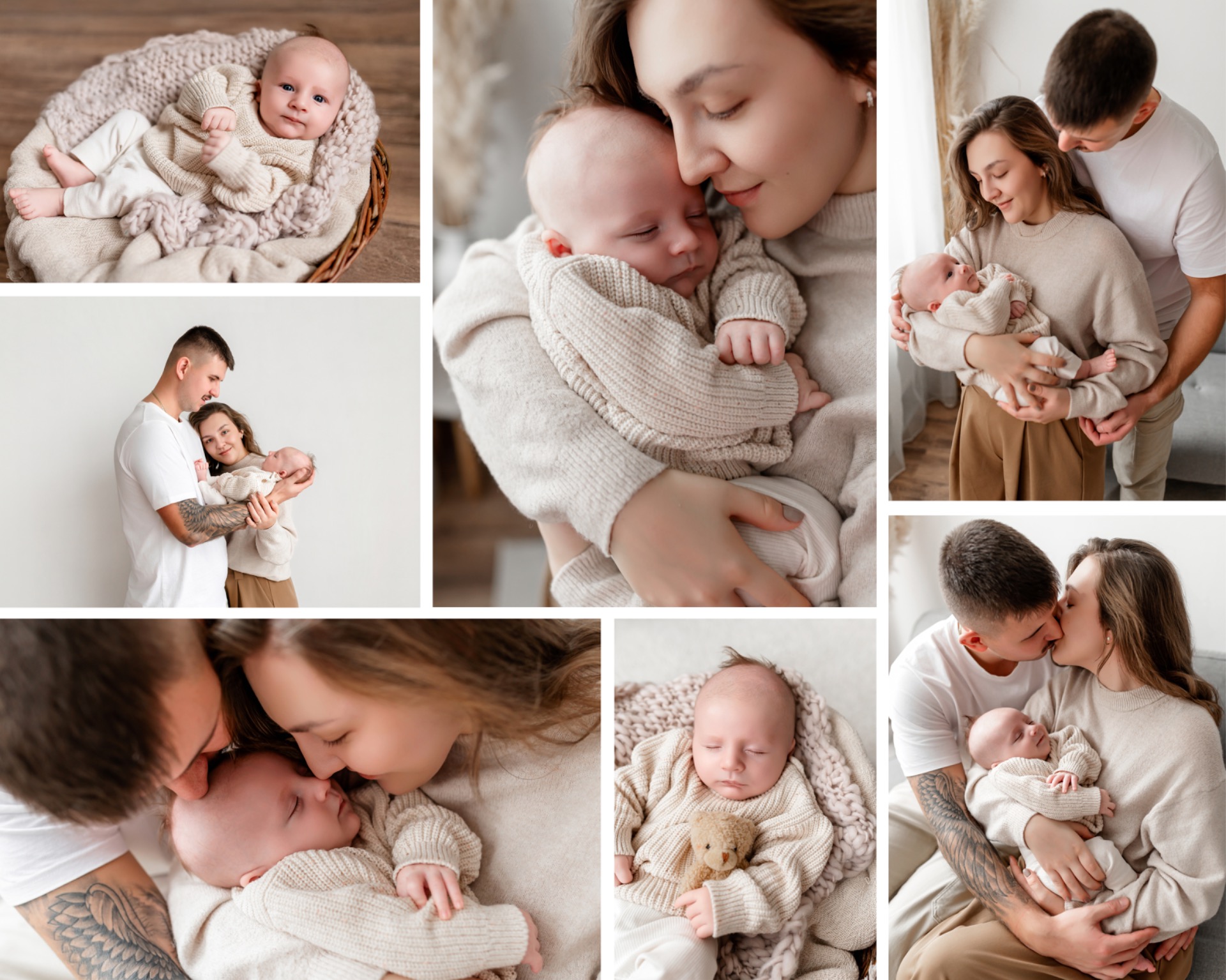 Vaše přítomnost miminko uklidňuje. Objetí, blízkost a doteky vytváří nejen krásné momenty pro fotky, ale i pro vaši paměť.Sladěné a jednoduché oblečení